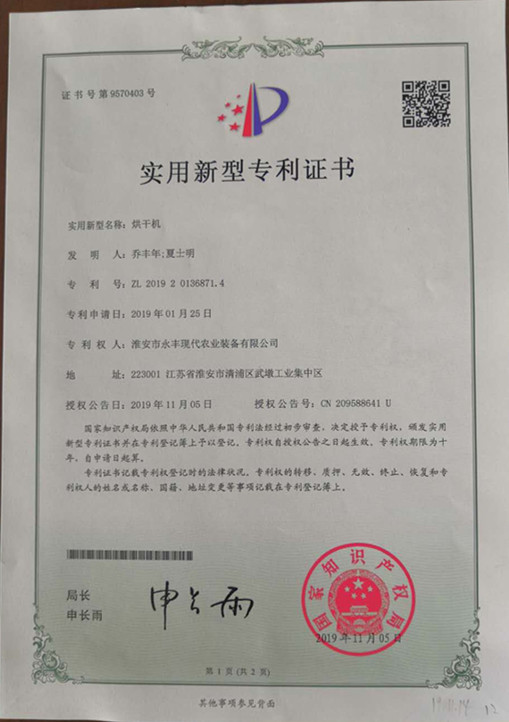 臥式糧食烘干機(jī)獲 實(shí)用新型技術(shù)發(fā)明專利,是取代中小型塔式糧食烘干機(jī)的一種新技術(shù)、新裝備,不僅適合于烘干小麥、水稻、玉米、豆類、花生、種子等糧食作物,而且還能烘干木屑、蝦殼、中藥材等堅(jiān)果類農(nóng)副產(chǎn)品,在工業(yè)上也有廣泛的用途。
